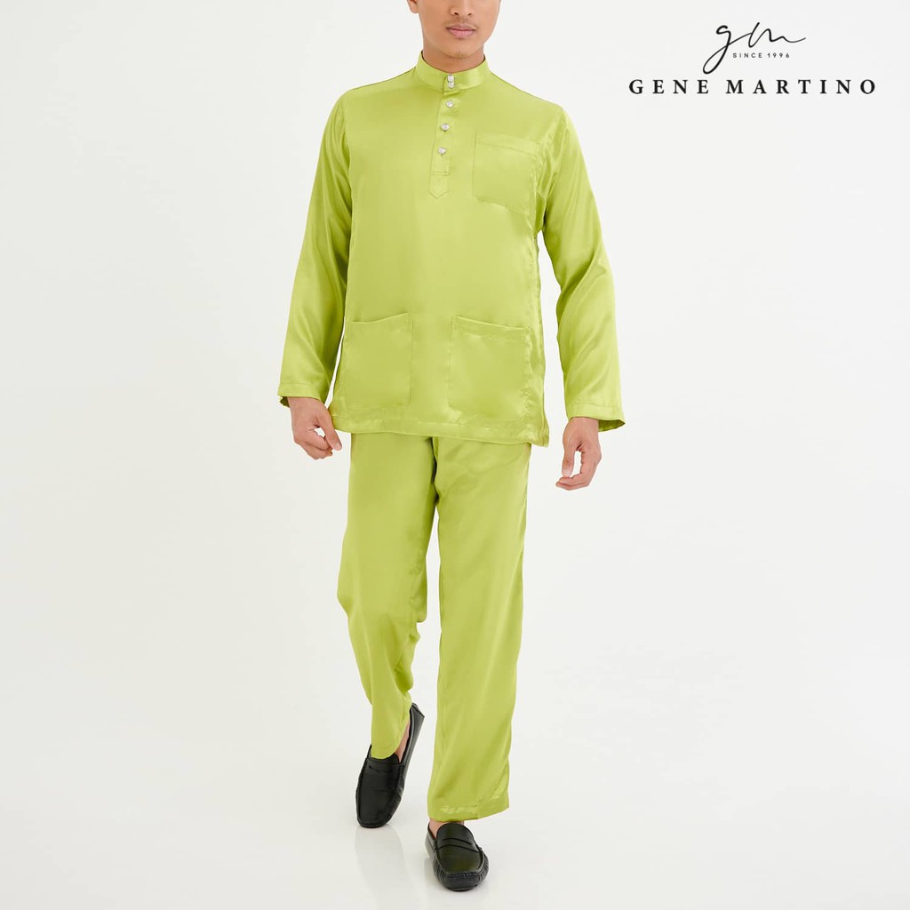 Gene Martino Baju Melayu Satin Classic Fit 666 Yellow Green 83 Shopee Malaysia